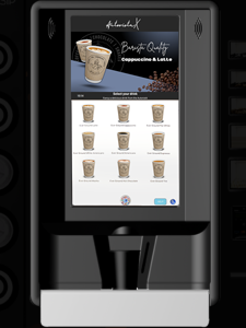 Add to that a 27″ touchscreen, with a split screen mode capable of running advertisements whilst a drink is being selected, an own cup function, fully customisable graphics & digital media and auto-cleaning functions and you have the ultimate solution.